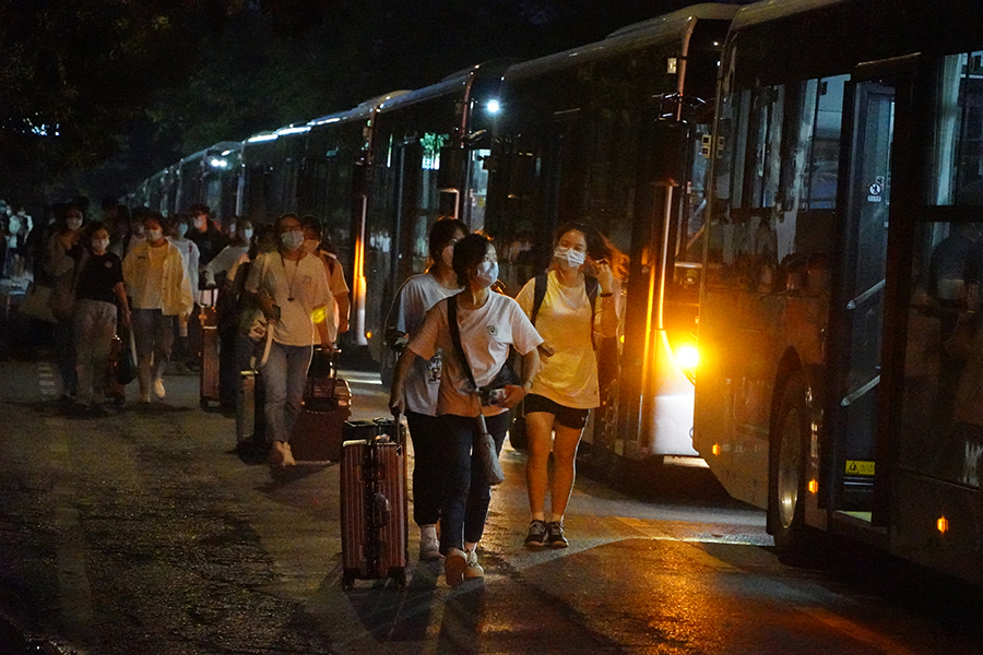 9月17日晚21时05分,临时管控中的bat365在线中国登录入口校园夜色苍茫,15辆载着民大支援恩施战疫第四批志愿者的大巴划破了夜幕,驶向恩施市各个社区的疫情防控第一线。这次,学校派出了449名医学生、16名带队老师。除此之外,44名参与校内替换轮值的战疫志愿者也已经抵达各自的疫情防控工作岗位。