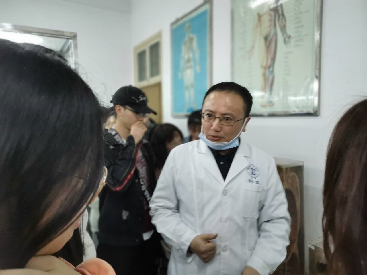 (人体解剖学教研室谭文波主任为学生讲解人体器官知识)