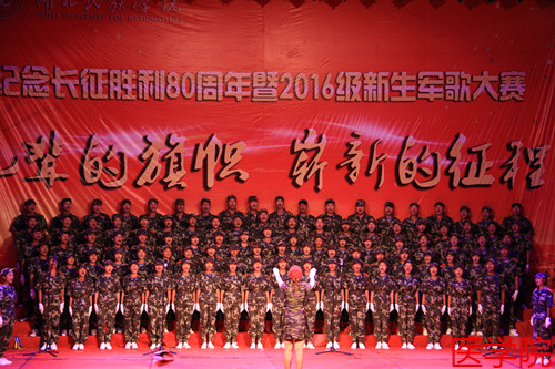 本网讯(记者 徐祎 陈灵佼/文 黎锐/图)为纪念长征胜利80周年暨“九一八事变”95周年,9月18日,bat365官网2016级军歌大赛在大学生广场隆重举行。音乐舞蹈学院兰宏建老师、黄玉林老师、谷秋阳老师、谷穗老师、陈超老师应邀担任评委,各二级学院党委书记、学生科老师莅临现场。大赛由文学与传媒学院的董圣洁同学和民族学与社会学学院的王伟文同学主持。