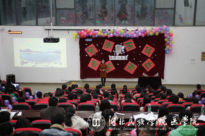 本网讯(通讯员 吴梦琪 向琴 严敏萍/文 周蕾/摄)为丰富大学生活,提高大学生的综合素质能力,11月17日,我院在修远楼5B509教室成功举办以“金声玉籁·麦动天外”为主题的主持人大赛决赛。我院黄鸿、詹康、宁檬、向涵老师及学生会主席项任阳应邀担任评委,共两百余人参与观看。大赛由向上和贺丹主持。