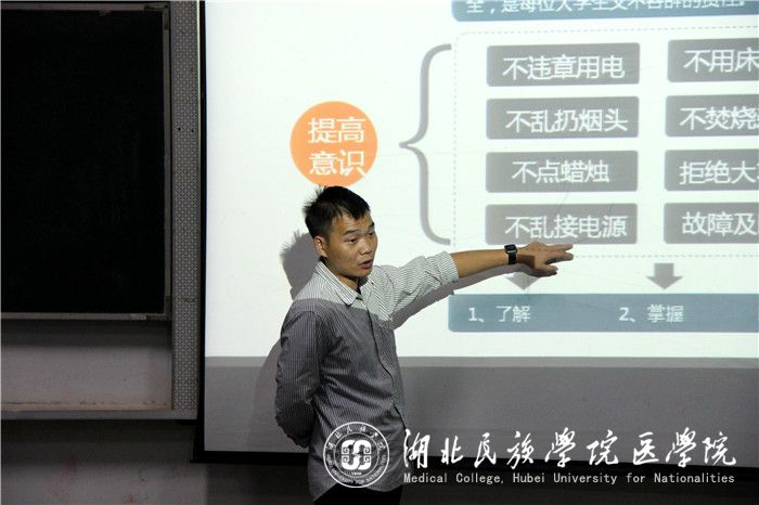 会议伊始,学生科科长向驰告诉在坐同学,人生中每个阶段都有自己的责任和自己该遵守的规则,他谈到“大学的自由是相对的,而相对的自由亦是建立在安全的基础之上”,在要求同学们牢记“五防”教育的同时,也要求同学们抵制非法校园贷。随后他通过案例分析向同学们展示了不遵守校园安全规则带来的严重后果。张鼎老师则立足生活,给大家着重强调了交通安全,提醒同学们乘车搭车应提高安全意识、保持出行警惕性、做好财物保管工作、确保出行安全。周家頔老师就高校备受关注的防火安全问题给出了自己的建议,希望同学们遵守校园规章制度,寝室用品应严格按照学校的要求来配置,从根源防火,并建议同学们在寝室生活中应互相帮助、互相理解、学会为他人着想,远离极端,建立和谐的寝室氛围。