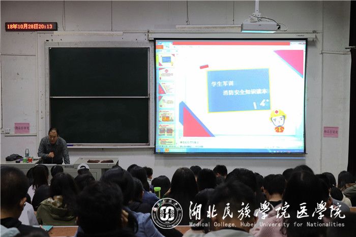 本网讯(卢天琳 苗佩佩/文 吕丰旭/摄)为了提高大学生安全意识,使其掌握一定的消防安全知识,10月28日,我院学生会公寓部于医学院8206教室举办主题为“人人防火,户户平安”的冬季安全讲座。bat365官网保卫处科长赵仁越应邀出席并担任了此次讲座的主讲人,我院18级全体班委及寝室长聆听此次专题讲座。