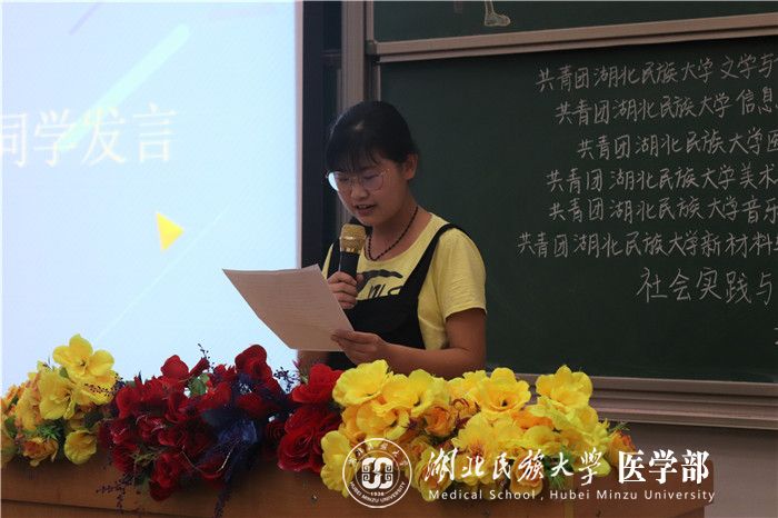 大会伊始,全体起立奏唱《青年志愿者之歌》并观看六院志愿服务视频。其后,由医学部2018级新生代表刘梦梅发言,她表示一年的志愿活动让她得到锻炼,提高了胆量、语言表达能力和应变能力,同时她为自己能献出爱心而骄傲。接着,赖秦宽和周承珍用亲身经历为切入点告诉志愿者们志愿者在志愿服务应当“用心用力用情”,以提升自己的价值。吴陶也向参会人员介绍了恩施州红十字志愿服务队的情况,并对bat365官网志愿者的辛勤工作给予了肯定,同时给在座的志愿者们分享了几点建议:一是不忘初心,始终保持一颗无私奉献、不求回报的爱心;二是持之以恒,根据自身实际、力所能及地参与各项志愿服务;三是认真总结,并在志愿服务中不断完善;四是健全机构。最后,在提问环节,吴陶对“如何把志愿服务活动坚持下来”作出了解答。她说道:“首先应该做好思想准备,想清楚后再加入。加入志愿服务后,应该有合理有效的志愿者制度,比如说她们必须保证一年要有24小时服务时间”。