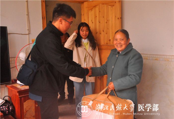 本网讯(记者 饶静/文 吴亚辉/摄)11月3日,医学部团总支书记梁丹玉带领社会实践与志愿者工作部同学们进入利川市井坝村,关心关爱建档立卡贫困家庭,并送上通过废品回收筹集的善款和慰问品。