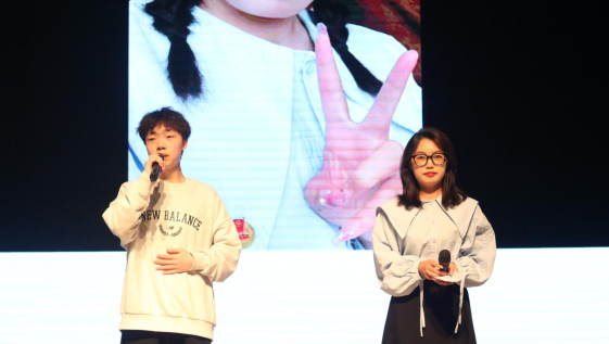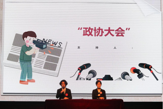 四号选手杨逸竹与二号选手付可鑫模拟新闻主持