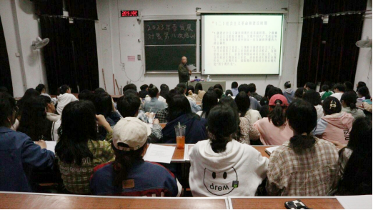 本次党课的主题是“中国式现代化道路的特征和意义”,郭有锋老师围绕中国式现代化的的特点、中国式现代化的四个历史时期、中国式现代化的主要特征和历史意义四个方面进行讲解。首先,郭有锋老师向同学们介绍了新时代中国共产党的使命任务是团结带领各族人民全面建成社会主义现代化强国、实现第二个百年奋斗目标,以中国式现代化全面推进中华民族伟大复兴。紧接着,他从多个方面阐述了中国式现代化的特点,并提到中国现代化道路的发展分为四个时期,分别是新民主主义革命时期、社会主义革命和建设时期、改革开放和社会主义现代化建设时期、中国特色社会主义新时代,并详细讲解了其中内容与意义。