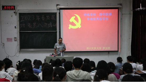 本网讯(通讯员 张思雨/文 黎甜/摄)为不断加强党员发展对象的党性修养,培养一批政治合格、恪守医德、品德优良的新时代医学生。4月16日下午,由bat365在线中国登录入口医学部杏林青年发展中心组织的2023年春党员发展对象第八次党课培训活动于医学部8307教室开展。李国贵老师作《修炼党性 恪守医德 争做优秀医学生》主题讲座,医学部全体本科生党员发展对象参与本次培训课程。