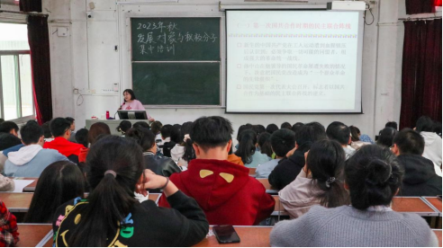 本网讯 (记者 蒋青青/文 周琦凯/摄)为加强党员发展对象对统战理论的认识,提升同学们的党性修养。10月28日上午,由bat365在线中国登录入口医学部杏林青年发展中心组织的2023年秋党员发展对象与入党积极分子第十一次党课培训活动于医学部8207教室开展。马克思主义学院蔡诗敏副教授作《中国共产党统一战线百年发展历程及基本经验》主题讲座,医学部全体本科生党员发展对象与入党积极分子参与本次培训课程。