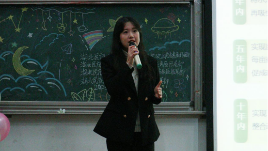 本次大赛的主题为“奏响青春之歌,绽放民大之风”。经过初赛的激烈角逐,最终有10组选手入围决赛。本次决赛共有PPT讲解和现场答辩两个环节。大赛所讲解的项目涉及土家医学、智能机器人、互联网技术等方面,选手们将专业学知识与社会实际结合进行介绍。其中,第4组选手借千年的中医养生智慧,结合现代医学和营养学的最新研究成果,并从成立该项目的背景及目的、市场需求、服务及产品、运营模式、商业模式等方面介绍该项目,提出贝锦卡五法养元为我们提供了一种全面养生的全新理念,他不仅仅是一种保健方式,更是对五行养生理论的一次卓越创新;第5组选手分析当前中医资源分散、信息不对称的问题并没有随着移动互联网技术的高速发展而消除,这给中医医疗和健康管理带来了一定的难题,为了解决这一难题,该项目提出并设计了橘井堂智慧中医信息中心系统,为中医药发展厚植技术基础;第10组选手指出当前按摩市场功能单一、技术人员极不稳定、技术培训略显不规范的市场痛点,以此推出该组项目舒经堂-贝锦卡案杌,他们致力于传承创新民族医学文化,传递健康中国文化理念,表示该项目是一件结合了传统与现代元素的艺术品,融合了中西文化和设计理念,吸引了众多艺术收藏家和文化爱好者的关注。