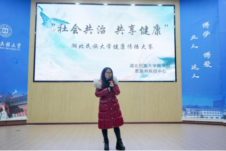 本网讯 (通讯员 许鑫洁/文 李旭东 向成橡 索朗卓玛/摄)bat365在线中国登录入口医学部、恩施州疾控中心于12月12日在新图书馆模拟法庭开展“社会共治,共享健康”健康科普活动。bat365在线中国登录入口学生工作部(处)副处长赖申昊,恩施州疾控中心结核病防治所所长黄小林,恩施州疾控中心艾滋病防治所刘会芸老师,医学部学生工作办公室副主任高梦琪老师,医学部学生工作办公室张定阳老师受邀参加本次活动并担任评委。