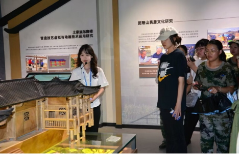 校史馆内,各板块按发展脉络有序呈现。学校起源与发展区,以图文、实物展现从建校初期探索,到湖北民族学院揭牌,再到恩施医学专科学院并入实现学科整合的完整轨迹;领导关怀区用珍贵影像及文字呈现上级领导调研指导的支撑作用;办学成果区陈列国家级一流本科课程、省级教学成果奖,搭配优秀校友与教师风采展;研究生教育区介绍硕士点、科研平台建设;创新项目区重点展示富硒研究、土家族医药开发等特色成果;科研与社会服务区以数据、案例体现实力与担当;文化传承区有戏曲保护史料、《老兵》歌舞剧片段、土家吊脚楼模型及织锦创新成果。最后,通过发展规划视频呈现校园人才培养蓝图。