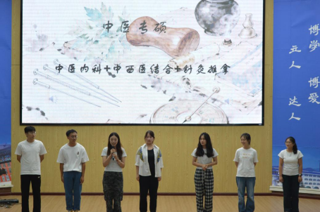 稍后,临床医学专硕、中医学专硕、中医学硕研究生分组依次上台进行自我介绍。每个小组的成员都悉心准备了富有个人特色的自我介绍,淋漓尽致地展现了新生们的青春朝气与蓬勃活力。