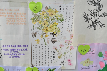 入围作品集中陈列于桂花园广场展示区,活动现场,同学们需先以毛笔书写一种中药草名称,并以四字短语概括其药理或药性,随后可前往展示区从参赛作品中选取三件进行投票。