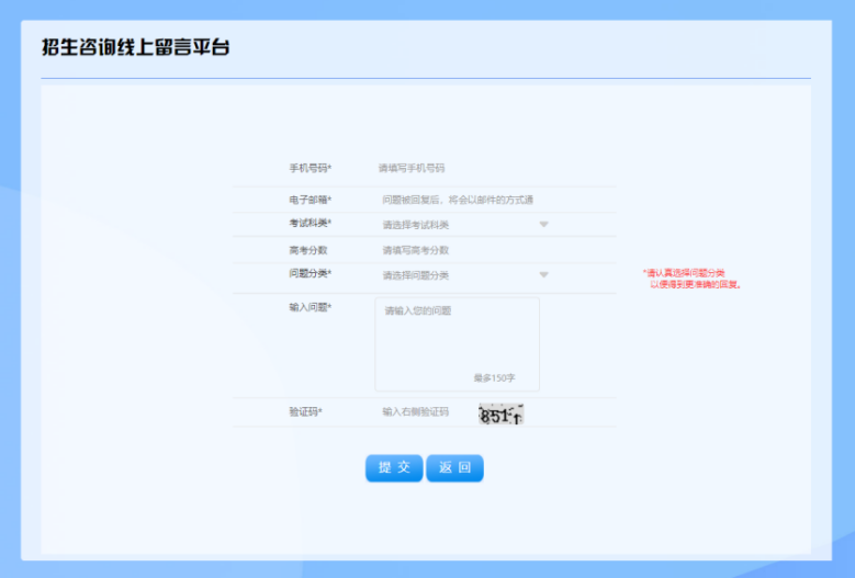 1.建议考生在提问时将考试科类、问题类型等填写准确,以有利于得到更精准的答复。