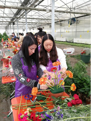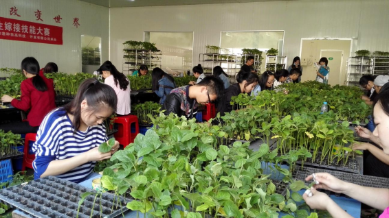 | 园艺专业学生参加嫁接技能比赛(赛事已连续举办四届) | 老师指导插花示范 |