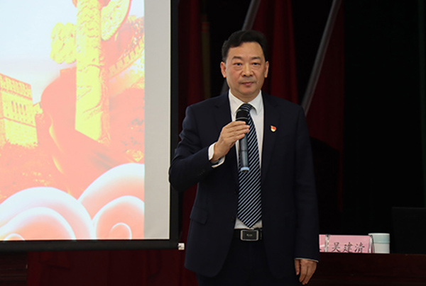 吴建清指出,习近平总书记十分重视青年工作、关心青年成长,经常给学子回信、与青年座谈,对青年大学生提出了殷切期盼和要求,也留下了很多发自肺腑的寄语,让人备受鼓舞、倍感振奋。在互动交流环节,吴建清与同学们就“如何理解‘为党育人,为国育才’”“如何更好地融入大学生活,做一个德才兼备的大学生”进行了交流。吴建清还领读了校训“博学、博爱、立人、达人”,希望广大青年学子铭记校训,践行“艰苦奋斗、甘于奉献、自强不息、追求卓越”民大精神,认真学习习近平总书记关于教育的重要论述,深学悟透,内化于心,外化于行,转化为成长发展的思想养分。