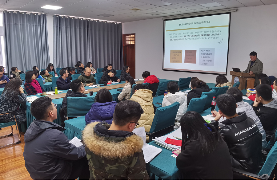 12月23日,美术与设计学院党总支再次组织教职工学习党的十九届六中全会精神,学校学习贯彻党的十九届六中全会精神宣讲团成员、马克思主义学院邱世兵博士作专题宣讲,学院全体教职工参加学习。