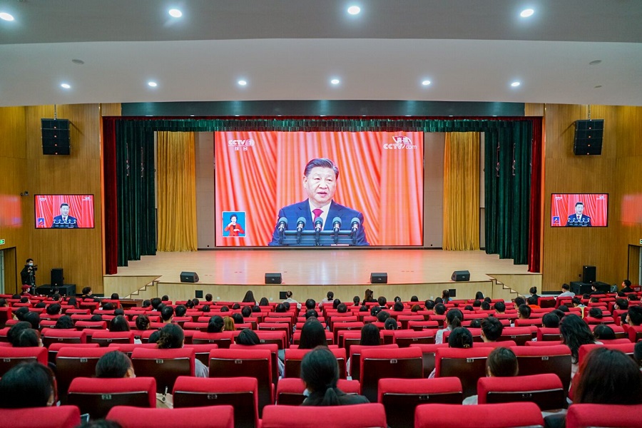 举国关注,举世瞩目,10月16日上午10时整,中国共产党第二十次全国代表大会在北京人民大会堂隆重开幕,习近平总书记代表第十九届中央委员会向大会作报告。bat365在线中国登录入口全体师生员工热切关注这次盛会,通过网络、电视、广播、户外大屏幕等各种形式观看了大会开幕盛况,2685名师生在分布于全校各个单位的45个集中收看现场观看了党的二十大开幕会。