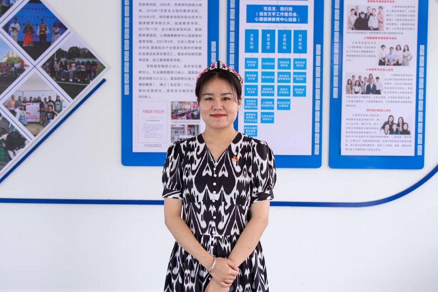 铸牢中华民族共同体意识是国家统一之基、民族团结之本、精神力量之魂。作为民族高校,更是要扎根中国大地,以铸牢中华民族共同体意识为主线,以打造民族团结教育基地为目标,不断深化民族团结进步教育。来自教师教育学院的维吾尔族辅导员古兰拜尔·吾斯曼主要负责学院少数民族学生工作,她告诉记者:“今天,万众期待的中国共产党第二十次全国代表大会隆重开幕,我怀着激动的心情收看了开幕式。教师教育学院每年培养500多名少数民族预科生,作为一名思想政治辅导员,如何引导各族学生相互融合,相互学习,团结进步,把铸牢中华民族共同体意识融入到学生工作的每一个环节,努力成为中国特色社会主义事业合格建设者和可靠接班人,就是我的本职工作!习总书记多次强调‘铸牢中华民族共同体意识’,我想,作为基层教育工作者,一定要加强学习,在本职岗位上脚踏实地,紧跟党的步伐,促进各民族同学像石榴籽一样紧紧抱在一起,共同建设伟大祖国,共同创造美好生活!”