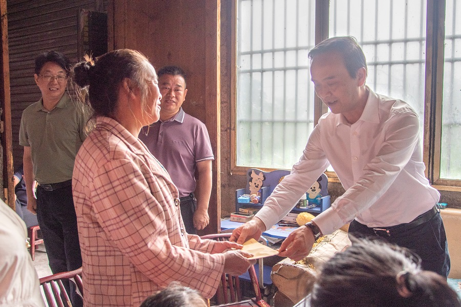 向前进(右一)走访监测户