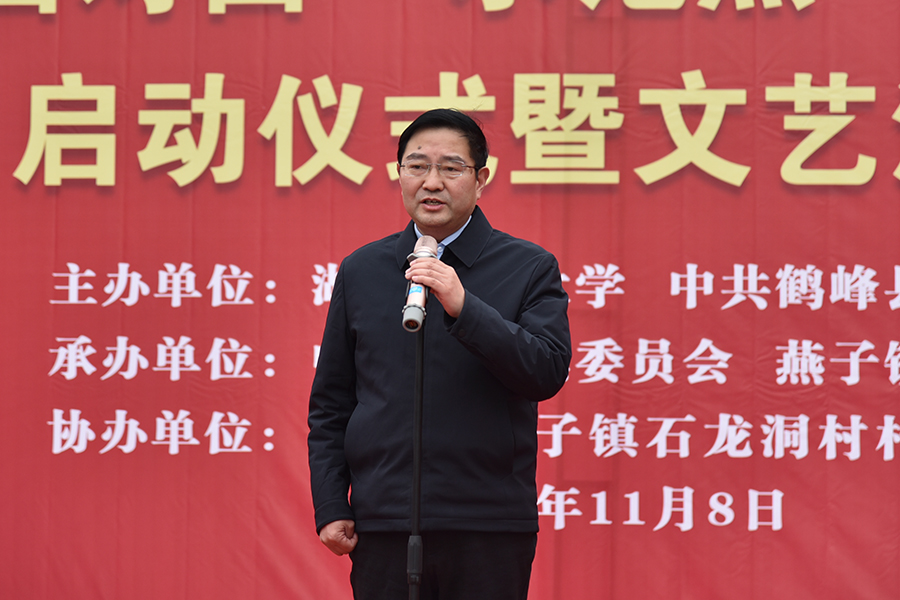 邓磊在启动仪式上发表讲话。他指出,本次活动是党史学习教育的创新举措,更是健全“我为群众办实事”长效机制的重要体现,作为“理论热点面对面”示范点,要让党的路线方针政策及时传递给这里的群众;作为校地合作的服务平台,要让科技成果在这里得到转化;作为学生的实践实习基地,要让学生的成长在这里得到锻炼。燕子镇贯彻落实“绿水青山就是金山银山”的精神,探索“绿水青山”向“金山银山”转变的路子,为燕子镇的乡村振兴奠定了产业发展的基础。他相信,在鹤峰县委县政府的领导下,通过全镇人民的努力,燕子镇一定能够巩固拓展脱贫攻坚成果,推进乡村振兴,实现农业农村的社会主义现代化建设目标。